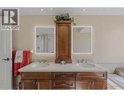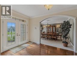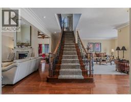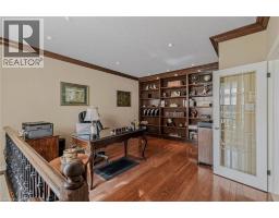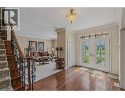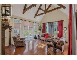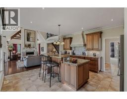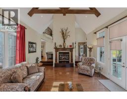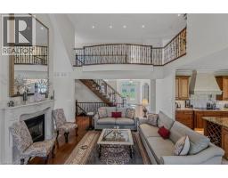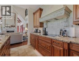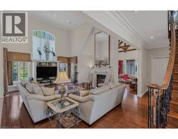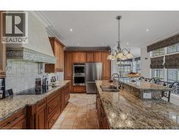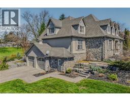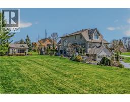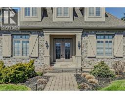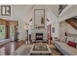 9 Rue Chateaux Terrace ~ an exceptional home in the prestigious Tutela Heights area, one of Brantford’s most coveted communities. Tucked away on a quiet cul-de-sac, this remarkable property blends upscale living with a serene, rural atmosphere, just minutes from everyday amenities. Boasting over 5,400 square feet of finished living space, this 2 storey home is designed for both grand entertaining and comfortable family living. Expansive principal rooms include a formal LR & DR, perfect for hosting, while the heart of the home showcases a stunning open-concept kitchen with custom cabinetry & range hood, granite countertops, stainless steel appliances, & breakfast bar, the kitchen flows into a bright eating area with walk-out to the patio. The greatroom impresses with soaring 18 ft ceilings and double sided fireplace shared with the sunken sunroom, hardwood flooring, and a wall of windows that flood the home with natural light. The sunken sunroom offers a warm, inviting retreat with vaulted ceilings & wood beams, French doors leading to the outdoor entertaining space with wood fireplace. A main floor office with built-in bookcases provides the perfect work-from-home setting. Upstairs, a Juliet balcony walkway overlooks the greatroom, creating a striking architectural feature. Primary suite offers a walk-in closet & 5 pc ensuite. 2 more bedrooms, 4 pc bath, and laundry room complete the second floor. Lower level is ideal for entertaining family & friends or could be used for multi-generational living with separate side door entrance. Upgraded luxury vinyl flooring, custom built wet bar, billiards area, & large rec room with gas fireplace. A 4th bedroom, 4 pc bath, & ample utility space. Step outside where landscaped gardens & Armorstone accents create a tranquil setting. A perfect year-round retreat is the custom built outbuiliding with cedar plank walls, concrete floor, an indoor 8 man hot tub! This home offers both luxury and practicality in equal measure. (id:61594)