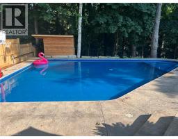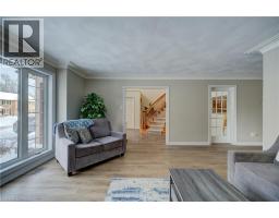 Prestigious Court location close to Brantford Golf and Country Club. Private ravine lot with newer inground pool. Grand entranceway with spiral staircase and vaulted ceilings. Front sitting room with large window and natural wood fireplace. Main floor office with beautiful wood inlays and built-in shelves and cabinets. Large formal dining room with bay window overlooking rear wooded area. Newly renovated kitchen, eat-in area with three walls of windows overlooking inground pool. Sunken main floor family room with natural wood fireplace. Beautiful main floor, laundry room with built-in overhead cabinets and lowers. Upper level: Four spacious bedrooms. Large primary suite with bay window overlooking ravine, recently renovated 4pc bathroom with jet, soaker tub, and glass shower, his and her sinks and walk-in closet. Second level: 4pc bathroom recently renovated. Large renovated bright lower level. Rec room with gas fireplace and pool table area, separate home gym and three-piece bathroom. Fully fenced rear yard with newer, inground pool 2023, hot tub with gazebo and stamped concrete; all overlooking picturesque private wooded ravine. (id:61594)