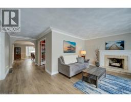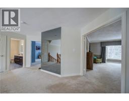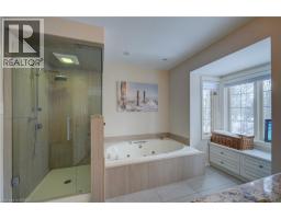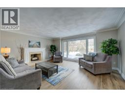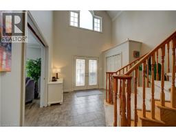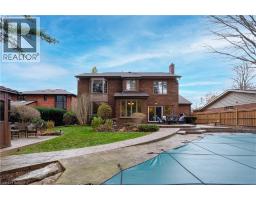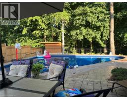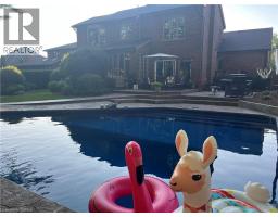 Prestigious Court location close to Brantford Golf and Country Club. Private ravine lot with newer inground pool. Grand entranceway with spiral staircase and vaulted ceilings. Front sitting room with large window and natural wood fireplace. Main floor office with beautiful wood inlays and built-in shelves and cabinets. Large formal dining room with bay window overlooking rear wooded area. Newly renovated kitchen, eat-in area with three walls of windows overlooking inground pool. Sunken main floor family room with natural wood fireplace. Beautiful main floor, laundry room with built-in overhead cabinets and lowers. Upper level: Four spacious bedrooms. Large primary suite with bay window overlooking ravine, recently renovated 4pc bathroom with jet, soaker tub, and glass shower, his and her sinks and walk-in closet. Second level: 4pc bathroom recently renovated. Large renovated bright lower level. Rec room with gas fireplace and pool table area, separate home gym and three-piece bathroom. Fully fenced rear yard with newer, inground pool 2023, hot tub with gazebo and stamped concrete; all overlooking picturesque private wooded ravine. (id:61594)