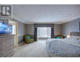 Prestigious Court location close to Brantford Golf and Country Club. Private ravine lot with newer inground pool. Grand entranceway with spiral staircase and vaulted ceilings. Front sitting room with large window and natural wood fireplace. Main floor office with beautiful wood inlays and built-in shelves and cabinets. Large formal dining room with bay window overlooking rear wooded area. Newly renovated kitchen, eat-in area with three walls of windows overlooking inground pool. Sunken main floor family room with natural wood fireplace. Beautiful main floor, laundry room with built-in overhead cabinets and lowers. Upper level: Four spacious bedrooms. Large primary suite with bay window overlooking ravine, recently renovated 4pc bathroom with jet, soaker tub, and glass shower, his and her sinks and walk-in closet. Second level: 4pc bathroom recently renovated. Large renovated bright lower level. Rec room with gas fireplace and pool table area, separate home gym and three-piece bathroom. Fully fenced rear yard with newer, inground pool 2023, hot tub with gazebo and stamped concrete; all overlooking picturesque private wooded ravine. (id:61594)