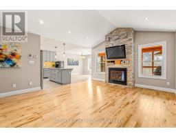 Your family's next chapter might be waiting in Wasaga Beach in the sought-after Royal Beech / Blueberry Trail area - this stunning custom-built raised bungalow offers the kind of space families dream about .Built in 2017 by a custom builder, this well-maintained raised bungalow offers approximately 3,200 sq ft of finished living space with room for everyone to live comfortably under one roof.The main level features an open-concept layout with vaulted ceilings, maple hardwood flooring, and a natural gas stone fireplace-creating a warm and inviting space for everyday family life. The kitchen is thoughtfully designed with custom cabinetry, granite countertops, backsplash, soft-close drawers / cabinets , and a large island perfect for meals, homework, and entertaining. The primary bedroom includes a walk-in closet and a 4-piece ensuite with soaker tub and separate shower. Two additional bedrooms, a full bathroom, and convenient main floor laundry complete this level. Walk out to the upper deck, enclosed with a plexiglass garage-style door, offering a versatile 3-season space for relaxing or hosting.The fully finished lower level provides incredible flexibility for extended family, older children, or guests, featuring 3 additional bedrooms, a full kitchen, bathroom with dual access, separate laundry, and a bright living area with large windows and a walkout to the covered patio.Situated on a fully fenced, pie-shaped lot, this property is ideal for families with kids and pets, including a fire pit area, and inground sprinkler system for easy maintenance. Additional features include; Central air conditioning (A/C), HRV, and central vacuum, No carpet throughout, Natural gas hookups on both upper and lower outdoor spaces ,Double car garage with hot and cold water, storage and loft. Parking for up to 6 vehicles total . Located on a quiet cul-de-sac in a family-friendly neighbourhood. Walking Distance to sandy beaches of Georgian Bay , Public Schools and Shopping . (id:61594)