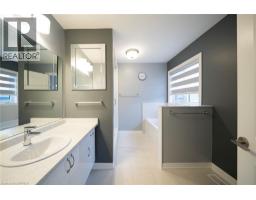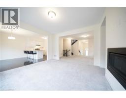 Welcome home to 9 Tarrison Street in Brantford, a stunning two-storey home located in Brantford’s Nature’s Grand community by LIV. The well-maintained exterior features an attached two-car garage and double-door entry. This spotless 2,519 sq ft home offers 3 bedrooms and 2.5 bathrooms. The tiled front foyer includes a large closet and a 2 piece powder room. The main floor features 9 foot ceilings and an open-concept layout defining the dining and living rooms, with the living room featuring a gas fireplace. This space connects seamlessly to the spacious kitchen and light-filled breakfast room, with a sliding door to the rear of the home. The bright kitchen features crisp white cabinetry and stainless steel appliances, including a built-in dishwasher. An oak staircase leads to a spacious upstairs family room with recessed lighting and two sets of double French doors opening to a balcony above the garage, overlooking the front of the home. A few steps up is the bedroom level, which offers 3 bedrooms, including a primary bedroom with a walk-in closet and a 4 piece ensuite featuring a tub and separate shower. This level also includes a 4 piece bathroom and a convenient laundry room. The unfinished basement offers high ceilings, large windows, and a 3 piece rough-in. The backyard features a deck off the rear of the home, providing easy indoor/outdoor living. Located in a growing, family-friendly neighbourhood minutes to the Grand River and Highway 403. (id:61594)