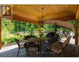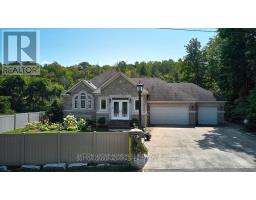 Absolutely Amazing Custom-Built Bungalow Surrounded by Mature Trees. This home offers a generous total living area of 4,700 sq ft, including a 2,350 sq ft main level and a fully livable 2,350 sq ft lower level with 9-foot ceilings and a separate entrance, which can generate additional income to help pay your mortgage, ensuring privacy and convenience for tenants or guests. The lower level features a living room, dining room, and 2 bedrooms with heated flooring and a wood-burning fireplace. Home w/ the Beautiful brick and stone exterior with a triple car garage. Inside features hardwood flooring throughout, pot lights, and a custom kitchen with granite countertops, backsplash, modern-style cabinetry, and a walkout to a large deck with a brick oven and private backyard. Spacious family room with a large window overlooking the front yard. The primary bedroom includes a large walk-in closet. Enjoy the beautiful backyard complete with a natural wood sauna, wood shed, gazebo, and BBQ areaa true outdoor oasis. Just steps to Sawlog Bay, where you can enjoy the fresh air, amazing lake fishing, and relaxing days on the sandy beach. (id:61594)