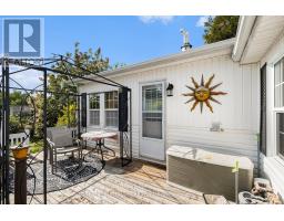 Welcome to Ashton Pines Retirement Community - country living at its best in this sought-after 55+ adult community, ideally located just eight minutes from both Stittsville and Carleton Place. This move-in-ready mobile home blends comfort, character, and convenience - the perfect place to enjoy your retirement years. Steps from the paved laneway lead up to a charming covered porch, where sliding patio doors welcome you inside to a spacious great room. A gas fireplace set in a handsome credenza adds warmth and charm, while French doors open to the bright living room featuring another cozy gas fireplace surrounded by built-in shelving - the ideal space for relaxing or entertaining. The adjoining kitchen offers abundant oak cabinetry, white appliances including a gas stove, a double sink overlooking the yard, and a nostalgic sliding bread storage compartment that adds a touch of old-fashioned charm. The open layout between the kitchen, living room, and great room creates a comfortable and airy flow throughout the main living areas. The bedroom features mirrored closet doors and convenient cheater access to the bathroom, while the washer and dryer are neatly stacked behind a separate door for easy access. From the hallway, step out to a spacious deck with gazebo - the perfect spot for your morning coffee, evening gatherings, or even a summer barbecue. A few steps away, a small patio area offers another peaceful outdoor space to enjoy the sunshine or unwind with a book. Outside, the home is surrounded by lovely landscaping and a quaint white picket fence, with a storage shed for added convenience and a paved driveway offering parking for two vehicles. Residents of Ashton Pines enjoy a quiet, pet-friendly community complete with an inground pool - the perfect blend of relaxation, comfort, and country living. Key Details: Monthly Lot Fee Approx. $660; Water Testing & Sewer Approx. $41/Month; Annual Property Taxes Approx. $800. Park management approval required. (id:61594)