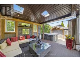 Welcome to this exceptional, detached 2-storey home, perfectly set in the highly sought-after Aurora Highlands community with the rare benefit of no rear neighbours. From the moment you arrive, you'll be impressed by the multitude and use of space this residence offers. Inside, discover a thoughtfully designed main floor featuring a skylight, a bedroom or private office paired with a stylish 3-piece bath and convenient main-floor laundry, ideal for multi-generational living or todays flexible lifestyle. The renovated dream kitchen is truly the heart of the home, complete with stainless steel appliances, a centre island, and elegant finishes. Enjoy gatherings in the expansive living and dining room. The cozy family room has a gas fireplace featuring a walk out to an enclosed deck and hot tub, a perfect retreat for tranquil evenings and year-round relaxation.The upper level offers four generously sized bedrooms, including a large primary suite with a 5-piece ensuite and walk-in closet. One bedroom has been transformed into a sophisticated home office with custom built-in desks and cabinetry, offering the perfect workspace.The fully finished basement is designed with versatility in mind, showcasing a large two-bedroom in-law suite with its own separate entrance and laundry facilities, ideal for extended family, guests, or income potential. As an added bonus, enjoy movie nights in the oversized Recreation room with coffered ceilings, a B/I Bookcase , B/I Fridge, gas fireplace and dry bar. Outdoors, enjoy a private, manicured backyard, complete with a charming custom shed for added storage and surrounded by lush greenery. Driveway fully interlocked! Must be seen to be appreciated! All this within minutes of renowned schools, boutique shops, restaurants, scenic trails, and quick access to major highways--a perfect blend of convenience and serenity. Approximately 4000 sq ft of total living space. (id:61594)