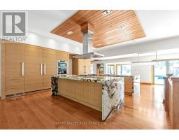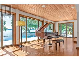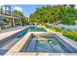 Exclusive ultra-private, this street is home to many of Canada's most prominent families. Located on the shores of Lake ON it has almost an acre, with Burlington and Oakville mins away. The multi-million reno on this bungalow has transformed it into open concept west coast modern aesthetic using natural materials of wood, marble, stone and granite. The architecture embraces the natural setting offering multiple glass walk-outs to the water and views from all the principal rooms. The hot tub, pool with infinity edge overlooking the Bay is irresistible! One a few properties that are allows for a dock. Imagine, after work, you pop into your boat or kayak for a quick work out before slipping into the hot tub. The Great Room has a book matched marble floor to ceiling marble fireplace that is calling for a roaring fire on a winters night. The Observatory Room is special place, whether it is evening drinks or morning cappuccino you will find yourself drawn to sit and watch the lake. **EXTRAS** Air exchanger, Alarm system. Separate heating controls, hot water tank & Irrigation system. (id:61594)