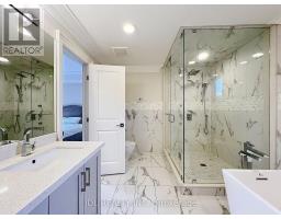 Discover this elegant and sun-filled custom-built 5+1 bedroom, 5+2 bathroom modern home offering approximately 4370 sqft of luxurious living space, thoughtfully designed with impeccable craftsmanship and attention to detail. Featuring premium 4" maple hardwood flooring, large-format porcelain tiles, LED pot lights throughout, and an impressive 18-ft grand foyer leading to a coffered-ceiling living room, this home blends sophistication with everyday functionality. The gourmet kitchen boasts a waterfall-edge quartz island, custom cabinetry, full backsplash, and designer finishes perfect for both entertaining and daily living. The oak staircase with " thick tempered glass railings adds a modern architectural touch. Upstairs, the spa-inspired master ensuite provides a serene retreat. The fully upgraded basement, with its own separate entrance, has been transformed into a self-contained luxury suite featuring a private home theatre, karaoke room, and sleek wet bar offering the ultimate lifestyle experience or excellent income potential. Don't miss it! (id:61594)