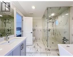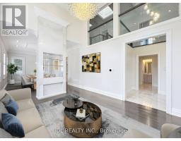 Discover this elegant and sun-filled custom-built 5+1 bedroom, 5+2 bathroom modern home offering approximately 4370 sqft of luxurious living space, thoughtfully designed with impeccable craftsmanship and attention to detail. Featuring premium 4" maple hardwood flooring, large-format porcelain tiles, LED pot lights throughout, and an impressive 18-ft grand foyer leading to a coffered-ceiling living room, this home blends sophistication with everyday functionality. The gourmet kitchen boasts a waterfall-edge quartz island, custom cabinetry, full backsplash, and designer finishes perfect for both entertaining and daily living. The oak staircase with " thick tempered glass railings adds a modern architectural touch. Upstairs, the spa-inspired master ensuite provides a serene retreat. The fully upgraded basement, with its own separate entrance, has been transformed into a self-contained luxury suite featuring a private home theatre, karaoke room, and sleek wet bar offering the ultimate lifestyle experience or excellent income potential. Don't miss it! (id:61594)