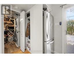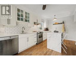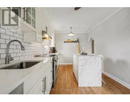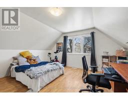 Welcome to your new home! Tucked into a peaceful pocket of St. Claire Gardens, this treed corner property offers rare privacy and a true "cottage-in-the-city" feel. Set on a generous lot along a quiet, low-traffic avenue, this home blends warmth, functionality, and long-term value. The welcoming covered verandah opens into a thoughtfully laid out main level showcasing hardwood floors, a comfortable living space with gas fireplace, dedicated dining area, and a beautifully refreshed eat-in kitchen featuring quartz surfaces, updated cabinetry, and stainless steel appliances. A renovated full bathroom and versatile main-floor bedroom - ideal for a home office, guest room, or flex space - add to the home's thoughtful design. Upstairs, you'll find two spacious bedrooms offering large windows and peaceful treed outlooks. The secluded backyard is a true outdoor oasis - ideal for relaxing, entertaining, and enjoying nature. Well maintained with key updates including: furnace (2012), roof (2012), A/C (2010), composite deck (2015), washer & dryer (2020), flooring (2020), smoke and CO detectors (2020), tree work (2020), and interior paint (2021). Spacious, comfortable, and ideally located near amenities, transit, and greenspace, all within an established neighborhood. A true hidden gem. // Tenant's gave notice - Home available as of March 15 2026. (id:61594)