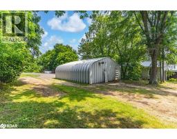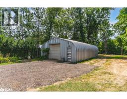 BUNGALOW WITH HEATED STEEL FRAME QUONSET HUT, SET ON A NEARLY HALF-ACRE LOT WITH NO DIRECT REAR NEIGHBOURS! Tucked within a canopy of mature trees on a nearly half-acre lot with a private treed backdrop, this property is one you have to see to appreciate, offering a heated 1,200 sq ft steel frame Quonset hut, above-ground pool, screened gazebo, and a generous back deck overlooking the yard that will have you imagining all the possibilities. The 30' x 40' heated steel frame Quonset hut includes a 10' x 10' roll-up door and front and rear man doors, making it ideal as a workshop or secure storage for vehicles and equipment, complemented by an extended driveway with parking for multiple vehicles and trailers. Step inside to a warm and inviting living room, where a soaring vaulted ceiling and a cozy propane fireplace create a welcoming space designed for relaxing. The bright kitchen offers generous counter space and front yard views, flowing effortlessly into a sunny dining nook overlooking the living area. The private primary suite includes a sliding glass walkout to the deck, perfect for enjoying tranquil mornings surrounded by nature, and is accompanied by a second bedroom and a 4-piece bath. A dedicated laundry room rounds out the functional main floor layout, while a statement spiral staircase leads to an open and versatile loft space, ideal for a home office, creative studio, cozy reading nook, or kids' play space. Additional features include a 7,400-watt generator and propane BBQ hookup. Just a short stroll from the Glencairn Conservation Area with peaceful trails and picnic spots along the Mad River, this property offers rural seclusion while remaining close to Alliston, Essa, Creemore, and Collingwood for shopping, dining, and daily essentials. With its unique features, character-filled spaces, and endless potential, this is a #HomeToStay waiting to be reimagined into your dream Pinterest creation. (id:61594)