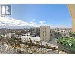 Welcome to The Empress, a well-managed condominium with 24 hour concierge, steps from Burlington Centre, Farm Boy, Denningers, public transit, parks, and quick highway access. This beautifully renovated 1+Den, 2 bath suite offers outstanding value and exceptional livability. The unit features newer flooring throughout, upgraded lighting, and a luxurious main bathroom. The sleek, renovated kitchen includes a custom built-in pantry, modern finishes, island and thoughtful storage solutions that maximize every inch. The spacious living room offers a comfortable layout with a walkout to the private balcony, while the separate den is ideal for an office or quiet reading space. The dining area easily accommodates a full-sized dining table, making entertaining effortless. The primary bedroom includes a rare walk-in closet and convenient two piece ensuite. Additional features include a full laundry room, PAX wardrobe system in the front hall closet, and custom built-in storage throughout the suite creating a highly functional and organized home. The Empress provides excellent amenities, including a renovated party room & gym, outdoor pool, and underground parking. Beautifully updated, move-in ready, and located in one of Burlington's most convenient neighbourhoods-this condo is a must-see. (id:61594)