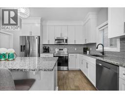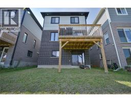 Welcome to this stunning 4-year-old single detached home offering over 2,000 sq. ft. of above-ground living space in one of Kitchener’s most desirable communities. Designed with comfort and elegance in mind, this 3-bedroom, 2.5-bathroom residence features 9 ft ceilings on the main floor, abundant natural light, and a thoughtfully designed layout perfect for modern family living. The gourmet kitchen is a chef’s dream with granite countertops, high-end stainless steel appliances, upgraded lighting, and stylish finishes throughout. The open-concept living area includes an electric fireplace and flows seamlessly to the dining area and deck—ideal for entertaining. Upstairs, a second-floor family room provides extra living space, while the convenient second-floor laundry adds everyday ease. The walkout basement offers endless potential for a future in-law suite or recreation area, and the home’s location on a private, and secure court provides peace of mind. Best of all, this property backs onto a small lake, creating a picturesque backdrop for your daily life. (id:61594)