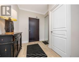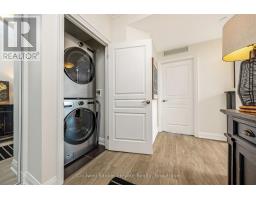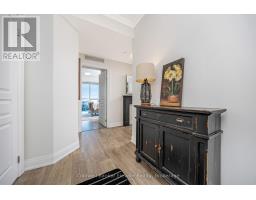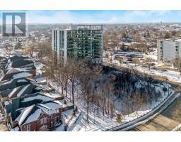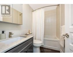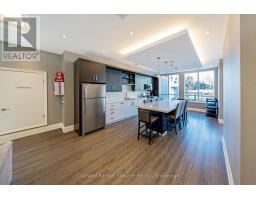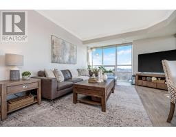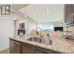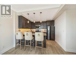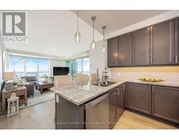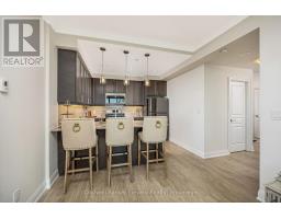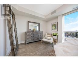 Stunning upper floor 2 bedroom, 2 bathroom condo offering breathtaking views of the Mississauga and Toronto skylines! This beautifully appointed unit combines elegant living with modern comfort and convenient access to major commuter routes. The welcoming front foyer features upgraded wide plank laminate flooring, pot lighting, and generous storage with a double mirrored closet and a separate laundry closet. The bright and spacious open concept living and dining area is filled with natural light from three south facing windows, showcasing scenic views of the Hungry Hollow ravine and trailway. A walk out from the living room leads to an expansive west facing approximately 250 square foot balcony, perfect for enjoying sunsets, relaxing, or entertaining outdoors. The modern kitchen is thoughtfully designed and also includes upgraded wide plank laminate flooring, quartz countertops with an extended breakfast bar featuring rounded edge detail, pot lights, stylish pendant lighting, and a full suite of new stainless steel Frigidaire appliances, including a gas stove. An undermount double sink with reverse osmosis filtered water completes the space. The primary bedroom offers two south facing windows with tranquil views, a walk-in closet, pot lights, and a private four-piece ensuite featuring a walk in glass shower. The second bedroom includes a double closet, west facing windows, and a sliding door with direct walk out to the balcony. A four-piece main bathroom with ceramic flooring and a tub shower combination completes the unit. Building amenities include a fitness room, residents lounge, outdoor patio with BBQ, secure lobby with mail and parcel lockers, on site maintenance office, two elevators, and underground parking. Ideally located close to shopping, dining, parks, and trails, this condo offers exceptional convenience for everyday living. A fantastic opportunity to enjoy low maintenance living in a sophisticated and stylish residence in the heart of Georgetown. (id:61594)