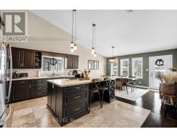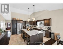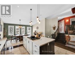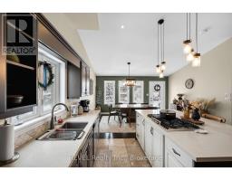 This stunning custom side-split in beautiful Fernwood Estates offers a layout that works perfectly for the whole family. The main floor features a bright front living room overlooking the quiet court. The incredible gourmet kitchen is truly a chef's dream, showcasing a massive custom center island with a built-in spice pullout, a retractable vented gas range, stainless steel refrigerator, two built-in ovens, under-cabinet lighting, quartz countertops, taps, and backsplash. Open to the dining area, it creates an ideal space for gathering with family and friends.Dark hardwood flooring continues upstairs to the second level, which includes three spacious bedrooms, a full bathroom, and lighted closets with organizers. The private third-level primary suite boasts cathedral ceilings, a fireplace, a walk-in closet, and an ensuite bathroom.The lower level offers a large family room with walk-out access, a powder room, and an office or bedroom complete with a wet bar. The lowest level of the home provides triple closet space, laundry facilities, and ample storage, making it suitable as an additional bedroom or family room.Fresh paint throughout the home adds beautiful contrast and character. The attractive exterior features a two-car garage, front porch, irrigation system, double-wide stamped concrete driveway, and two backyard access points-one from the kitchen and one from the family room-enhancing its excellent curb appeal. During the warmer months, perennial gardens in both the front and back yards add vibrant colour. Numerous updates have been completed, including the kitchen appliances, island, countertops, taps, sink, furnace, central vacuum, sump pump, irrigation system, deck, and pergola-just to name a few. (id:61594)