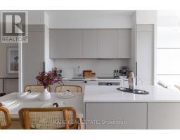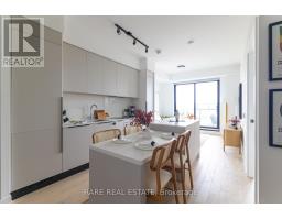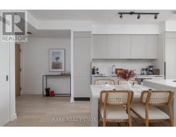 $769.92 MonthlyAbsolute showpiece. Impeccably finished 1 bedroom, 635 sq ft at the boutique & high-end 200 Sudbury. The open-concept kitchen, dining, and living area is designed for those who love to host - a stunning Scavolini kitchen with cabinetry in Mist laminate, custom 8.5 ft upgraded island with 4-seat dining + extra storage, White Harvest quartz countertops, and a White Harvest slab quartz backsplash with side splash - clean lines, no grout, no compromise. An extended pantry shifted toward the entry and an integrated hood fan insert keep everything functional and clutter-free. LED valance lighting sets the mood without trying too hard. The spacious living room flows seamlessly from the kitchen, flooded with natural light and anchored by floor-to-ceiling windows. Elrose Oak engineered hardwood runs throughout the entire suite.The bathroom follows with the same level of intention. Quarzo semi-polished tile on the floors, walls, and full shower surround. Custom glass shower door with black trim and concealed drain. Matte black shower plumbing and rainfall showerhead. Flint Grey floating vanity with two pullout baskets, White Corian matte countertop, and upgraded pot lighting. Matte black hardware carries the palette from the shower all the way to every door in the suite. Every upgrade deliberate. Step outside to your own spacious private balcony - sip those martinis or morning coffees in peace and privacy, skyline views as your backdrop, with a gas BBQ hookup already in place. Brunch on Ossington, afternoons at Trinity Bellwoods, Saturday nights wherever the mood takes you - and on those yucky days, at least you know you have everything nearby. The Queen TTC 501 steps from your door. Walk everywhere. Commit to nothing. Follow your mood. Pull up a stool. The island's got room. All of it can be yours. (id:61594)