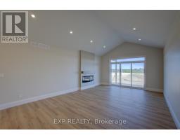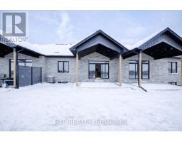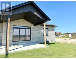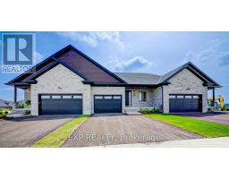 Downsize without compromise with this gorgeous end unit townhome by Duimering Homes. Tucked at the end of Bedell Drive in Drayton, this newly built bungalow pairs low maintenance living with elevated finishes. A vaulted great room ceiling amplifies light and space (hello, extra windows and 9" ceilings) and centres around a cozy electric fireplace with wood mantle. The gourmet kitchen features quartz counters, custom full height cabinetry, stainless appliances, and an island flowing into the dining and overlooking the family room. Out back enjoy a covered back patio for easy indoor/outdoor living and partial privacy fence. Two generous bedrooms include a serene primary suite with walk in closet and spa inspired ensuite. Practical perks: main floor laundry/mudroom and an attached 2 car garage with a double wide paved driveway. With only one shared wall, added privacy, and a quiet, walkable location, this is single level living without sacrificing style, comfort, or sunlight. (id:61594)