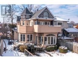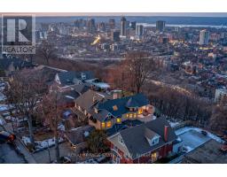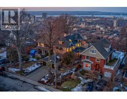 Timeless character meets one of Hamilton's most breathtaking views. Perched along the Niagara Escarpment, this iconic residence captures panoramic vistas of the Hamilton skyline, Lake Ontario, and even Toronto in the distance-transforming every sunrise, sunset, and city light into a daily masterpiece. Originally built in 1907 by Canadian playwright and actor Horatio George Summers, this generational family home seamlessly blends historic charm with thoughtful modern updates across approx. 3,300 square feet of living space. Designed for unforgettable entertaining, the open-concept main level features floor-to-ceiling windows that flood the home with natural light, highlighting rich hardwood floors and framing spectacular views. A spacious kitchen with breakfast bar anchors the space, effortlessly connecting multiple dining areas and a sunken living room that invites you to gather and unwind. A private front office overlooking the porch, stylish powder room, and updated laundry room with inside access to the double garage complete the main floor. The second and third levels offer five bedrooms and three full bathrooms, providing ideal flexibility for families, guests, or work-from-home living. The primary suite is a true retreat, featuring a barrel ceiling, wood-burning fireplace, walk-in closet, and beautifully renovated 5-piece ensuite. Step onto your private 500 sq. ft. balcony and take in 180 degrees of uninterrupted city views with your morning coffee. The third level adds more character with skylights, a full bath, additional bedroom, office space, and a distinctive turret-style sitting area perfect for reading or a creative play space. Outside, a multi-tiered backyard carved into the Escarpment showcases layered gardens, a four-tier entertaining deck, extended outdoor living space, and a spiral staircase to the upper balcony. Just steps to Juravinski Hospital, Concession Street, the Escarpment stairs, and Rail Trail. A piece of Hamilton's history, elevated. (id:61594)