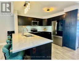 End-unit contemporary freehold two-storey townhome located in a desirable, family-friendly neighbourhood. This carpet-free main floor home offers excellent curb appeal with a stone, brick and vinyl exterior, single-car garage, and covered porch. The bright main floor features an open-concept living and dining area with sliding patio doors leading to a private backyard, along with an upgraded kitchen complete with stainless steel appliances, RO system, granite countertops, modern cabinetry, and ample counter space, plus a convenient powder room and inside entry from the garage. The second level includes three spacious bedrooms and two full bathrooms, highlighted by a large primary suite with a walk-in closet and private ensuite, second-floor laundry, and an additional walk-in closet in one of the secondary bedrooms. The unspoiled basement offers a large window and rough-in for a 3-piece bathroom, providing endless potential for future finishing. Ideally located close to schools, parks, shopping, transit, future LRT routes, and just minutes from Highway 401 for easy commuting. (id:61594)