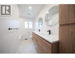 Welcome home to 91 Varadi Avenue, a beautifully renovated 1,050 sq. ft. solid brick bungalow in Brantford’s sought-after North End. Featuring 3+1 bedrooms and 2 bathrooms, this home combines modern style with family-friendly living in the desirable Brierpark/Greenbrier neighbourhood. With its tidy curb appeal and attached single-car garage, it makes a welcoming first impression. Step inside to discover a bright, modern interior that has been completely updated throughout! The main level showcases a smart layout finished with new vinyl flooring, stylish fixtures, and sleek recessed lighting. The foyer offers a convenient closet and leads into the spacious living and dining area. The kitchen is bright and modern, featuring shaker-style cabinetry, a honeycomb tile backsplash, and brand-new stainless steel appliances including a built-in dishwasher. The main floor is complete with three fresh, ultra-clean bedrooms and a stunning 5-piece bathroom featuring double sinks, generous cupboard space, and a tub/shower combo. A convenient staircase from the kitchen leads to the basement, with a side door providing easy access to the backyard. The lower level is fully finished, complete with an extra bedroom, a den, and a 3-piece bathroom with a stand-alone shower. Fresh flooring, recessed lighting, and a bright, immaculate design create a versatile space ideal for extended family, guests, or a home office. Enjoy the outdoors in a fully fenced backyard framed by mature trees — a private escape perfect for family living, pets, or gatherings. Paired with a North End location close to top schools, beautiful parks, convenient shopping, and quick highway connections, this home offers both comfort and convenience. (id:61594)