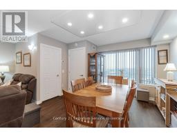 this beautifully upgraded 2-bedroom + den, 2-bathroom corner unit offers 1,005 sq ft (+55 sq ft balcony) of sun-drenched space, with captivating northwest views of the Escarpment. Designed for both comfort and style, the open-concept layout features high-quality plank laminate flooring and cozy broadloom in the bedrooms. The modern kitchen is appointed with rich dark cabinetry, generous storage, and flows effortlessly into a bright living space perfect for entertaining or relaxing. Step onto the spacious balcony to take in stunning sunsets and fresh air. The primary bedroom is a serene retreat, complete with a 4-piece ensuite and walk-in closet. Both bathrooms feature sleek tiles and tasteful finishes, with thoughtful upgrades throughout. Custom pot lights add warmth and charm. Enjoy premium building amenities, including a rooftop BBQ terrace, stylish party room, meeting space, guest suite, and ample visitor parking. Conveniently located with quick access to Hwy 401/407, just steps from Milton GO, and close to shopping, golf courses, Kelso, organic farms, and more. Includes one parking spot and one locker. (id:61594)