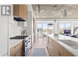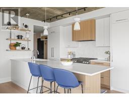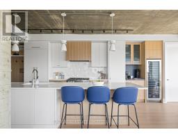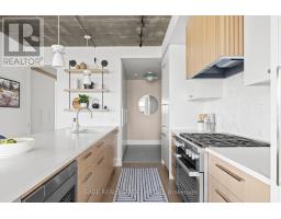 You know that feeling when you walk into a space and your shoulders instantly drop? That's what happens here. Maybe its the light pouring in from three directions, illuminating the texture and tone of wide-plank white oak floors. Or the calm, the kind that comes from being tucked at the end of the hallway, with no one above, and only the skyline ahead. This three-bedroom, two-bathroom corner suite wasn't remodeled it was completely reimagined as a personal home. A renovation done with patience, intention, and taste. Every drawer in the custom Wolstencroft kitchen was planned so nothing gets in the way. Appliances? Fully integrated, top of the line, including a 36 Miele dual-fuel range with six gas burners. And then there's the terrace: 300 square feet of completely open sky. No balcony above just a gas hookup for grilling, a water line for your plants, and space to breathe. With three walkouts living, office, and primary its designed for that perfect summer cross-breeze. Positioned at the end of the hallway with no suite above, the sense of privacy is exceptional enhanced by panoramic, unobstructed city views, with the CN Tower glowing at the centre of a dazzling cityscape at night. A second private balcony off the guest suite adds the kind of separation guests (and hosts) quietly love. The finishes? Thoughtful. Canadian-made lighting, sound-dampening drywall, built-in closets, and solid wood that makes everything feel grounded. Serene. Like the city exists outside your windows, not inside your walls. And the building? Boutique, beautifully maintained, and located in King Wests most refined stretch where restaurant openings happen weekly, and everything you love about city life is just steps or a streetcar away. This isn't just another condo. This is where you land when you're ready to live really well. (and ps: check out how low the condo fees are). (id:61594)