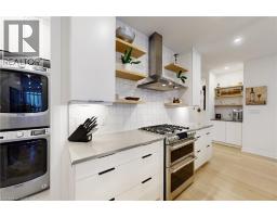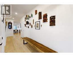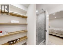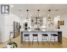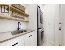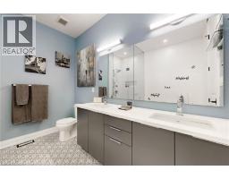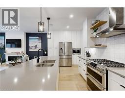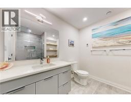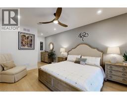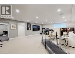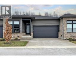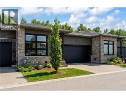 Enjoy luxury living and architectural elegance in this extensively upgraded double car garage bungalow townhome which backs on to the wooded area and located steps from world class 'Legends on the Niagara' golf course in Niagara's premier contemporary community. Luxury finishes throughout the house including $125K spent in quality upgrades and enjoy carefree living in this rare enclave of upscale homes. Features include 9' ceilings on main level, 8' tall interior doors, gorgeous gourmet kitchen with stainless steel appliances, extended center island with Quartz countertops and waterfall edge, laundry room with custom built-ins located conveniently off of the kitchen. Modern open concept great room with electric fireplace and floating wood mantle, large windows, sliding glass door leading to private, covered 20' x 10' deck finished with glass railing and gorgeous views of wooded area. Backyard also features a concrete patio and natural gas hookup for BBQ. Serene primary bedroom with large walk-in closet and spa-inspired 5PC ensuite, complete with glass and tile shower, soaker tub, double vanity and Quartz counters. West facing 2nd bedroom with large windows, 4PC guest bath and interior door to double car garage with rough-in for future electric vehicle completes the main level. Finished basement with upgraded carpet and under pad provides additional 660 Sq Ft of luxurious living space including a bedroom, 3PC ensuite bathroom with heated floors & custom wood shelves, a huge rec room with large window and exercise area. Unfinished mechanical room is 307 Sq Ft in size. Home is wired with audio system in all the rooms, outside video cameras installed and comes with Sony surround sound system, Sonos Amps, HIKVISION for video surveillance along with the 90 TV in the basement rec room. Hunter Douglas blinds throughout with remotes. Upgraded lighting throughout. 200 AMP Electrical Panel. Energy Star certified and located close to golf, boating, watersports and fishing. (id:61594)