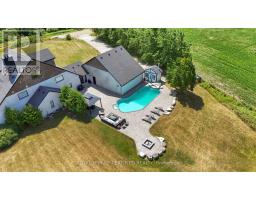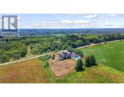 Poised atop a majestic 1.75-acre hilltop estate, this custom-built 2 1/4 storey masterpiece redefines luxury living with sweeping panoramic views and uncompromising design! This 4-bedroom, 4-bathroom masterpiece is a perfect blend of modern elegance and country charm. The gourmet kitchen is a culinary showpiece, appointed with two statement islands, premium Sub-Zero and Wolf appliances, and bespoke cabinetry tailored for both daily living and entertaining. Adjacent, sunken family room accented by coffered ceilings and a separate formal dining room with vaulted ceiling sets the stage for memorable gatherings. Retreat to the luxurious primary suite with its own vaulted ceiling, dual-sided fireplace, and spa-like 5-piece ensuite. The fully finished walkout basement expands the living space and opens to a private outdoor retreat. Outside, resort-style living awaits an inground saltwater pool with a tranquil waterfall is set among professionally landscaped grounds, offering ultimate serenity and seclusion. An oversized 4-car garage adds practicality to this one-of-a-kind property. This is more than a home its a private, architectural statement for the most discerning buyer. (id:61594)
