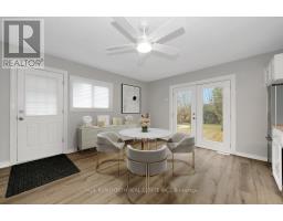 This 1.5-storey, 3-bedroom home blends thoughtful updates with a layout that simply makes sense. The main floor anchors daily life with a spacious primary bedroom and a full bathroom ideal for easy, single-level living, with two additional bedrooms and a convenient two piece bath upstairs, perfect for family, guests, or a dedicated work-from-home setup. Freshly painted throughout, the home feels crisp and move-in ready, with new glass railings and vinyl flooring that carries a seamless flow from room to room, durable, modern, and ready for everything. Step outside and the lifestyle expands, a welcoming front porch for morning coffee, and out back, a generous deck overlooking a large treed lot with no rear neighbours, your own private backdrop for summer dinners, quiet reading, or weekend gatherings. Whether you're searching for a detached home in family friendly Rockland with a main floor primary bedroom, a large private yard, or simply a space that balances function and calm, this property delivers a country vibe in a convenient location with easy highway access and walking distance to shops and restaurants. Great location, Great Value. Some photos have been virtually staged. (id:61594)