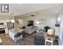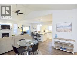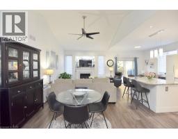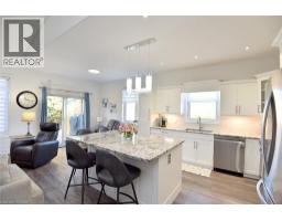 Introducing this beautiful turnkey end unit, nestled in a private setting in a friendly, well managed complex in Niagara on the Lake with low condo fees. Upon entering you will immediately notice the inviting bright open concept design, cozy fireplace, and vaulted ceilings. The thoughtfully modernized kitchen offers a comfortable gathering place thanks to the large custom island. Recent kitchen updates include new cabinet doors, drawer fronts, and hardware, pantry, granite counters, subway tile backsplash, undermount sink, under cabinet lighting and stainless-steel appliances. The many pots and pans drawers, corner cabinets and pantry add to the already ample kitchen storage. The large primary bedroom enjoys large ensuite with an updated vanity with a quartz countertop and his and hers sinks. The walk-in closet offers a laundry option while maintaining and plenty of space thanks to the organizers. Completing the main level is an additional bedroom/den and the 4-piece main bath with a newer vanity and granite counter. The bright, fully finished lower level features an expansive recreational area, additional bedroom, third full bath, optional laundry, cold cellar and storage, a perfect retreat for guests or additional family. The porch front surrounded by gardens adding to the curb appeal while the private rear yard boasts a gorgeous new back deck with a pergola and is surrounded by mature evergreens and well-tended grounds. The complexes’ exclusive gates offer walking access to a grocer, banks, shops, restaurants, and Centennial Park. Located just minutes to world class wineries, Niagara Park trails, golf courses, and all the classic charm that Old Town has to offer. Other recent upgrades include new flooring on the main level, custom window coverings, furnace, air conditioning and a sump pump with battery backup and alarm. Nothing to do but enjoy, Welcome Home! (id:61594)