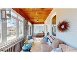 This outstanding property showcases the perfect mix of historic elements and modern updates. Formerly recognized as a quaint Inn/B&B and now the perfect family home with 4 bedrooms & 4 bathrooms. A stunning enclosed verandah with exposed stone leads you to the grand entranceway to the living room with new gas fireplace (2021) or family room with bay window. The oversized kitchen with plenty of cabinetry and cupboards, stainless steel appliances & a spacious island with cooktop will make you feel like a top notch chef! Just off the kitchen is a formal dining room with built-in cupboards, two piece powder room and access to patio/barbeque area. There is a bonus room at the back currently being used as an exercise room and a place to safely store items for outdoor enjoyment. The second floor has 4 spacious bedrooms and not one, but two full bathrooms, an office/sitting area with exposed brick, laundry closet & a door to your very own balcony looking over the back of the home and double detached garage. A den area at the front of the house leads you to a fantastic second floor balcony with views of other beautiful historic homes & the St. Lawrence River! The lower level has a finished recreation room, 2 piece bathroom & efficient combi-boiler (April 2021). Located just a few steps from the downtown core, hospital, parks & the Brockville Railway Tunnel. This is one you wont want to miss! (id:61594)