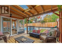 Beautiful 2+2 bedroom back-split bungalow featuring an open-concept layout with hardwood floors and a bright living room with gas fireplace. Spacious kitchen and dining area on the main level. Upper level offers a primary bedroom, second bedroom, and office with walkout to a sunroom. Enjoy a wrap-around deck and saltwater pool-perfect for summer. Lower level includes two additional versatile rooms, laundry, and generous storage. (id:61594)