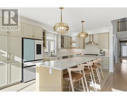 Set on an extraordinary premium lot-131 ft deep and over 100 ft wide at the rear-this is easily one of the most upgraded and distinguished homes in the area, offering a rare combination of scale, privacy, and luxury living. Featuring the highly sought-after Lockport II model by Claridge Homes and professionally designed with inspiration from the renowned lottery CHEO Dream Home, this residence offers over 4,300 sq ft of finished living space with 9-ft ceilings on every level. The backyard is a true showpiece, with professionally landscaped grounds and a never-used New Age outdoor kitchen complete with a 36" natural gas grill, dual burners, and hot/cold water connections-perfect for elevated outdoor entertaining.Inside, the home showcases model-home quality finishes throughout. The main level offers a refined layout with formal living and dining rooms, a private den, and a library. A dramatic open-to-above dining area with statement lighting creates a striking focal point. The great room features a two-sided upgraded fireplace connecting seamlessly to the library-offering flexibility for a potential 6th bedroom with a full bath nearby, ideal for guests or multigenerational living. The chef-inspired Deslaurier kitchen in an elegant Angora finish is complemented by Samsung Bespoke appliances. Upstairs, 5 generously sized bedrooms all feature walk-in closets-a rare offering. The primary suite is a private retreat with a spa-like 5-piece ensuite, while bedrooms 2 and 3 share a Jack & Jill bath with dual vanities. The partially finished basement includes a custom bathroom with premium Baril fixtures. Option to complete basement adding an additional 800 sqft to the living space. Additional features include rough-ins for central vacuum and EV charging, along with a motion detection security system on all doors and windows. A truly exceptional home combining luxury design, thoughtful layout, and one of the most unique lots in the community. (id:61594)