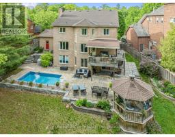 Welcome to this stunning 5+1 bedroom, 4-bathroom home nestled in one of Pickering's most sought-after neighborhoods, backing onto a serene ravine lot. With over 3,300 sq. ft. of beautifully designed living space plus a fully finished walk-out basement, this home offers a perfect blend of elegance, functionality, and natural beauty. The heart of the home is the chef-inspired kitchen, featuring stainless steel appliances, a large island, ample cabinetry, and a butlers pantry that connects to the formal dining room, ideal for hosting. The bright breakfast area opens to a covered deck with picturesque ravine views, perfect for morning coffee or family BBQ. The main floor is rich in character with hardwood flooring, crown molding, and wainscoting throughout. It includes a formal living room, a spacious family room with a gas fireplace, a private office (or optional 6th bedroom), and a convenient laundry/mudroom with direct access to the double-car garage and a walkout to the backyard. Upstairs, the expansive primary suite is a retreat of its own, featuring a sun-filled layout, a generous walk-in closet, and a spa-like 5-piece ensuite with double sinks, a soaker tub, and a separate shower. Four additional well-sized bedrooms and a recently updated 4-piece bathroom complete the upper level. The finished walk-out basement is an entertainers dream and offers excellent in-law suite potential. It includes a cozy living space with a wood-burning fireplace, a built-in bar with a sink and bar fridge, pot lights, large windows, & a 2-piece bathroom. Step outside to your private backyard oasis featuring an in-ground pool (installed in 2018), elegant stonework (2018), and a charming gazebo perfect for year-round enjoyment. With mature trees and unobstructed ravine views, this outdoor space offers both beauty and privacy. This exceptional home is perfect for growing families or anyone who loves to entertain! (id:61594)