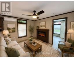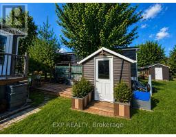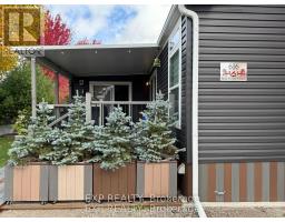 Located in 9 month section of award winning Happy Hills Resort. Gorgeous Custom Built 2021 Commodore Park Model with Additional Sunroom (16 x 42 and 12 x 20). 8ft ceilings throughout allow for extra large double hung windows and transoms. Zebra blinds on all. Eye catching composite deck and skirting with hard top coverage. Sunroom also has composite flooring with loads of added storage, 3 ft windows and pendant lighting. Open concept kitchen has new fully upgraded stainless steel appliances including a higher end gas stove with air fryer and grill, fridge with ice cube maker, a dishwasher, microwave and farm house sink. Solid oak cupboards, and pull out drawer storage including unique pull out storage in "dead space corner". Cupboards are pulled over the fridge and gabled. 3 Stage Home Filter System and higher particle filter for kitchen sink and ice maker. Electric Fireplace in the living room. Both bathrooms have granite vanities and marble flooring. Built in dressers and extra storage in the master bedroom. The laundry is located in the closet in the second bedroom. Both bedrooms fit king size beds. Cement pad and insulated spray foam under both modular and sunroom. 7 x7 shed with hydro. BBQ included on front deck and there is another composite deck off the back door. Lovely castor planters with Blue Spruce in front. Newer lawn mower stays. A truly beautiful location with a large heated family swimming pool, children's splash pad, heated adult's only swimming pool, a 9 hole golf course and driving range, Bocce Ball, Lighted Tennis court, Pickleball, Volleyball, Basketball, Shuffleboard, Horseshoe pits, Daily children's crafts/activities, hayrides, bingos, movies, special tournaments, mini animal farm, hiking trails, several playgrounds, lighted skateboard and bicycle activity center and more. Get in on this lovely lifestyle early! Contact listing agent for fees, deposit and occupancy requirements. 15 minutes to the 401and 10 minutes to amenities.Virtually stage (id:61594)