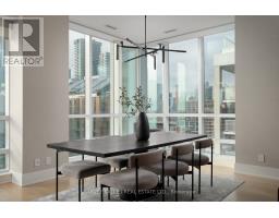 Welcome to 55 Merchants' Wharf, an exceptional waterfront residence where sophisticated design, bespoke finishes, and sweeping lake and city views define elevated downtown living. Thoughtfully curated throughout, this home offers a seamless blend of modern elegance and timeless craftsmanship.The expansive open-concept living space is anchored by a dramatic custom wood-slat feature wall with integrated ambient lighting and a sleek wall-mounted TV, creating an architectural focal point ideal for both refined entertaining and everyday living. Floor-to-ceiling windows bathe the interior in natural light and frame tranquil water views, while neutral tones, clean lines, and premium finishes create a calm, upscale atmosphere that flows effortlessly into the chef-inspired kitchen featuring a dramatic waterfall island, integrated appliances, bespoke cabinetry and striking architectural details that blend warmth with modern sophistication. The dining area is perfectly positioned beside expansive windows, offering an ever-changing urban and waterfront backdrop for memorable meals and gatherings.he primary bedroom is a serene, hotel-inspired retreat with floor-to-ceiling windows, wide-plank hardwood flooring, designer lighting and detailing. The spa-like ensuite offers a freestanding soaker tub, glass-enclosed rainfall shower, double vanity with stone countertops, and elegant wood and marble finishes.A generously sized second bedroom provides flexibility as a guest suite or executive home office complemented by a private ensuite with sleek modern finishes. Step onto the private balcony and enjoy unobstructed views of Lake Ontario-perfect for morning coffee or sunset relaxation. Ideally located steps from the waterfront boardwalk and minutes from the Financial District, St. Lawrence Market, and Toronto's premier dining and cultural destinations, this residence delivers a rare opportunity for luxury waterfront living in one of the city's most sought-after addresses. (id:61594)