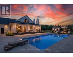 When Home is a Sanctuary: From the moment you drive through the gates of this John Wilmott-designed custom home, every detail speaks of exceptional craftsmanship. The handcrafted modular brick and Cape Cod siding set the tone, while the crushed granite flagstone path leads to a stunning Mahogany entry door. Step inside to soaring 10-ft ceilings, White Oak flooring, custom Poplar trim, and elegant crown mouldings - a home that truly inspires.The heart of the home is thekitchen with marble counters, opening to a covered back porch featuring a brick fireplace, built-in BBQ, concrete pool and spa, and a seamless speaker system - perfect for entertaining year-round.Relax in the main-floor principal bedroom with a spa-like ensuite, curbless shower, and a large walk-in closet. A main-floor office, powder room, and laundry complete the level. Upstairs, two additional bedrooms and a bathroom provide space for family or guests.The lower level boasts a large family room with above-grade windows and fireplace, an additional bedroom and bath, a sizable exercise room with rubber flooring, and ample storage with built-in cupboards.Step outside to thoughtfully designed landscaping for privacy and impact. Park with ease in the oversized 2-car garage with epoxy floors or take advantage of the additional detached garage with heated floors, a 3-piece bath/change room, and a custom wood-burning oven.This isn't just a home - it's a lifestyle of luxury, attention to detail, and timeless design. (id:61594)