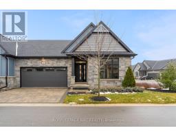 Absolutely stunning end-unit bungalow in the sought-after Lavender Fields community. This is the largest model in the neighbourhood, offering 1,508 sq ft on the main level plus 850 sq ft of professionally finished lower-level living space and an incredible deck & patio. From the moment you enter, the sense of space is apparent. Ten-foot ceilings grace the entrance and both bedrooms, while the living room features a dramatic 12-ft vaulted ceiling, creating an open, airy feel throughout. Over $200,000 in curated upgrades elevate this home. The custom kitchen showcases premium cabinetry and hardware, Silestone quartz countertops and backsplash, smart storage solutions including a spice drawer and pantry, and an extra-wide 9-ft waterfall island with storage on both sides. High-end appliances include a Bosch induction cooktop, wall oven and refrigerator, plus a Fisher & Paykel integrated two-drawer dishwasher. The restful primary retreat offers a walk-in closet, pendant lighting, floor-to-ceiling custom drapery, and a spa-inspired 4-pc ensuite with double sink vanity and glass-enclosed shower. The builder-finished lower level features an open spindle staircase, spacious recreation room, third bedroom, 3-pc bath, and ample storage. Outdoor living includes a private oversized composite deck and interlocking stone patio, surrounded by greenery. The upgraded garage features an epoxy floor, EV-charger ready rough-in, painted walls, and insulated attic. Additional features include smooth ceilings, upgraded trim and round-edge drywall, integrated central speaker system, Kusco lighting, upgraded plumbing fixtures, flow-through humidifier, whole-home water purification, 12mm extra-wide plank flooring, 3M privacy window tint, and motorized blinds. Low maintenance fees cover water, management, landscaping, and snow removal, offering true turnkey living in an exceptionally well-run, architecturally controlled community in prestigious Fonthill. Virtual Tour available. (id:61594)