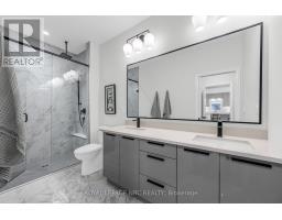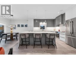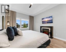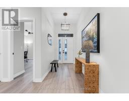 Nestled in the heart of Lavender Fields, a Grey Forest community, this rare end-unit bungalow is the largest model in the neighbourhood, offering 1,508 sq ft on the main level plus approximately 850 sq ft of builder-finished lower-level living area. From the moment you enter, the sense of space is unmistakable. Ten-foot ceilings enhance the entry and both bedrooms, while the living room showcases a dramatic 12-ft ceiling. More than $200,000 in carefully curated upgrades elevate this home well beyond builder standards. The custom kitchen is a true showpiece, featuring premium cabinetry and hardware, Silestone quartz countertops/backsplash, smart storage solution including a pantry/spice drawer, and impressive 9-ft waterfall island with storage on both sides. High-end appliances include Bosch induction cooktop, wall oven and fridge and a Fisher and Paykel integrated double-drawer dishwasher. The serene primary retreat offers a walk-in closet, designer pendant lighting, floor to-ceiling custom drapery, and a four-piece ensuite with double vanity and glass-enclosed shower. The lower level includes open spindle staircase, spacious recreation room, third bedroom, three-piece upgraded bath, and generous storage area. Outdoor living is equally impressive with a private oversized composite deck and interlocking stone patio surrounded by greenery. The upgraded garage features an epoxy floor by Garage Kings, EV-charger outlet and insulated attic. Additional upgrades include smooth ceilings, upgraded trim and rounded drywall, integrated in-ceiling speaker system, designer lighting, premium plumbing fixtures, flow-through humidifier, whole-home water purification, extra-wide plank flooring, 3M privacy window tint, and much more. Low maintenance fee covers water, professional management, landscaping, and snow removal, delivering true turnkey living in one of Fonthill's most prestigious, architecturally controlled communities. Video & Virtual tour available. (id:61594)