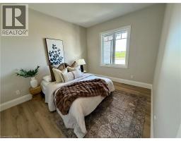 Downsize without compromise in this beautifully crafted end unit bungalow townhome by Duimering Homes, located at the quiet end of Bedell Drive in Drayton. This newly built home offers low maintenance living with elevated finishes throughout. The bright open concept layout features a vaulted great room ceiling, 9’ ceilings, oversized windows, and an electric fireplace with wood mantle. The gourmet kitchen showcases quartz countertops, custom full height cabinetry, stainless steel appliances, and a large island overlooking the living and dining areas. Enjoy a covered rear patio with partial privacy fencing, two generous bedrooms including a primary suite with walk in closet and spa inspired ensuite, plus main floor laundry. Complete with a fully finished attached oversized single car garage and double wide paved driveway plus a lovely covered front porch. Quiet location offering refined single level living in a welcoming small town community in one of the most indemand neighbourhoods built by the premier local home builder. (id:61594)
