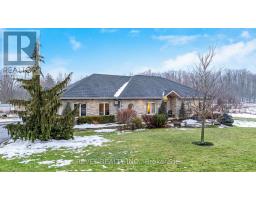 Set on 5 scenic acres in the highly sought-after community of Campbellville, this quality-built bungalow offers a rare blend of privacy, space, and everyday convenience. A mix of open grassland and mature trees creates a peaceful, picturesque setting that feels worlds away, yet remains just minutes to Highway 401, Milton, Guelph, and Burlington.The home is thoughtfully laid out for both comfort and function, anchored by a bright and expansive great room located just off the kitchen. This open-concept space incorporates a generous dining area that easily accommodates a large table, making it ideal for family gatherings and entertaining. Large windows frame beautiful rural views and flood the space with natural light, while the kitchen connects seamlessly to the main living areas, creating an easy, natural flow throughout the home.Two generously sized bedrooms are located on the main floor, offering the ease of bungalow living. The primary bedroom features a spacious ensuite bathroom, while a 3-piece main bath serves the second bedroom. A large laundry room is conveniently positioned off the oversized two-car garage and side entry, providing exceptional functionality for a country lifestyle.The fully finished lower level extends the living space with two additional bedrooms, a 3-piece bathroom, a home gym area, a kitchenette, and a large open recreation room. With a walk-up entry, this level offers excellent potential for an in-law suite or multi-generational living, adding flexibility and long-term value.The grounds are beautifully landscaped with outdoor patios, a large gazebo, tranquil ponds, and a long driveway accented with interlock stone borders and in-ground lighting. There is also excellent potential to add walking trails throughout the property, particularly within the wooded areas.A refined country property with a strong layout, in-law potential, and an exceptional Campbellville location, this is a home that offers both lifestyle and long-term value. (id:61594)