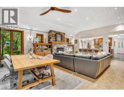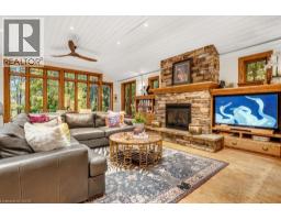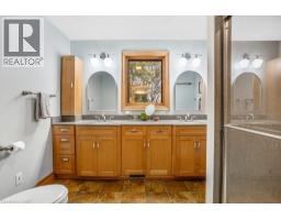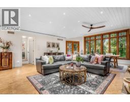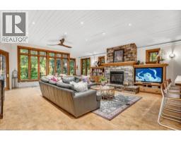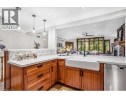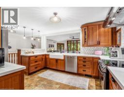 Perched on the brow of the sought-after Ancaster Heights neighbourhood, and at the end of a quiet cul-de-sac, this one-of-a-kind home offers breathtaking views of the Niagara Escarpment, where you can hear the rush of Tiffany Falls from your own backyard. Set on a private 60 x 228 ft ravine lot with manicured landscaping and mature trees, and surrounded by custom-built estates, this 2,544 sq ft residence (plus finished walkout basement) blends nature, craftsmanship, and comfort. The heart of this open-concept main level features a custom solid-wood kitchen with quartz counters, breakfast bar, marble backsplash and restaurant-grade range hood, opening to a sunlit, vaulted shiplap ceiling family room with cork floors, dry-stone fireplace, and oak built-ins. Incredible views of the escarpment from the wall of windows, immerse you into nature! Step outside and hear the waterfalls from the Azek deck, which walks down to the fenced yard (property extends beyond the fence). The main floor primary suite offers a walk-in closet and ensuite with double sinks and oversized shower. A bonus space connecting the home to the 1.5 car garage currently has access to the two piece powder room, and laundry, but could be a great second kitchen for overflow during hosting, an incredible mud room, or continue its current use as main floor storage/pantry! Two generous sized additional bedrooms, each with ample closet space, and a 4-pc bath complete the upper level. Plenty of storage in the walkout basement, which offers a wall of windows from the rec room with views of the forest, and a door to a covered patio. A 23 x 16 foot workshop has double doors to the rear yard as well. This home has received $50,000 of updates in the past four years, making an already immaculate home, move-in-ready! (id:61594)