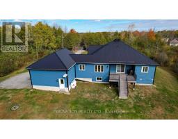 Welcome to 934 Maple Hill Road, a remarkable custom-built home (2017, occupied 2018) set on approx 4 ACRES located just 10 minutes from vibrant Kemptville. The scenic drive along Maple Hill Road is lined with towering maples, offering a picturesque approach to this tranquil country retreat.This spacious bungalow offers approximately 2,027 sq ft of living space on the main level with 4 bedrooms, plus 2 additional bedrooms on the lower level and 3 full bathrooms in total. The primary suite is a true haven featuring a luxurious 5-piece ensuite with radiant heated floors. The bright open-concept living area showcases large windows, a cozy propane fireplace, and a family-sized eat-in kitchen ideal for gatherings.The lower level is nearly complete, with an expansive rec room (ceiling to finish) and two generous bedrooms perfect for guests or multi-generational living.Enjoy peaceful mornings or summer evenings on the covered lanai deck overlooking the vast backyard that offers space, privacy and natural beauty. Additional highlights include a durable METAL ROOF, ICF foundation, oversized two-car garage, and a complete water treatment system. All appliances, washer/dryer, and microwave are included.Located less than 3 minutes to Hwy 416, this home combines modern comfort, thoughtful design, and a serene rural setting an exceptional find for families and those seeking space without compromise, just minutes from the growing amenities of Kemptville. (id:61594)