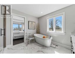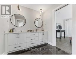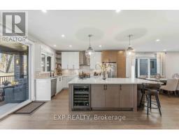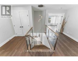 Welcome to an exceptional four-bedroom residence where refined design meets everyday comfort in one of Ottawa's well-connected family communities, moments to parks, schools, shopping, transit, and an easy commute to downtown. A grand entryway opens to a striking floating staircase and unobstructed sightlines through the main level. Engineered hardwood spans the first and second floors, complementing the elegant open-concept layout. The dining area flows seamlessly into a designer kitchen and inviting living room, anchored by a gas fireplace and overlooking the private backyard. The chef's kitchen is beautifully appointed with premium stainless steel appliances, quartz countertops, a gas range, oversized island with built-in wine fridge, and abundant workspace for entertaining. French doors off the living area reveal a bright main-floor office with a large window-ideal for working from home. Upstairs, four generous bedrooms offer exceptional comfort. The luxurious primary suite features a truly dream-worthy custom dressing room with built-ins and centre island, along with a spa-inspired five-piece ensuite complete with dual vanities, Roman tub, and glass shower. Two secondary bedrooms share a convenient Jack-and-Jill bath, while the fourth bedroom enjoys its own ensuite and walk-in closet. A beautifully designed laundry room with custom built-ins completes the upper level. The finished lower level offers outstanding flexibility with a private in-law suite featuring its own exterior entrance, full kitchen, living area, bedroom, bathroom, for multigenerational living, guests, or future income potential. Outside, enjoy a landscaped, fully fenced yard with PVC fencing, a spacious deck, built-in sun shades, and storage shed. An oversized single garage adds everyday convenience. Sophisticated, warm, and thoughtfully designed throughout, this is a rare opportunity to own a truly turnkey home in Ottawa. (id:61594)