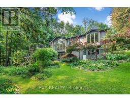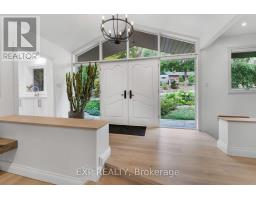 Oversized Double-Wide Lot (previously 2 separate lots) backing onto Tiffany Falls in Ancaster Heights. From the moment you arrive at this stunning 3+2 bedroom bungalow, the mid-century charm and modern touches invite you in with a striking double-door entry, floor-to-ceiling windows, and vaulted ceilings that flood the main living space with natural light and panoramic views of the forest.This beautifully maintained home offers a spacious and functional layout, featuring a fully finished basement with two additional bedrooms, perfect for extended family or a home office setup. The warm and inviting living room boasts a contemporary fireplace, hardwood floors, and seamless indoor-outdoor living framed by nature. Set on a lush, private lot surrounded by mature trees, this is your opportunity to own a serene escape-just minutes from Ancaster Village, trails, and amenities. A rare find that combines timeless design with the beauty of conservation living.Note that this property was originally two lots with the current bungalow situated on 1 of the 2 lots. If severed you would have nearly a half acre on the second currently empty lot. (id:61594)