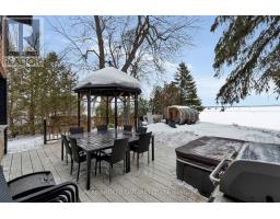 Stunning fully renovated private waterfront home on deep property nestled on the shores of Lake Simcoe. With 5 bedrooms plus office (2 being in a private in-law suite) and 5 full bathrooms, this home has room for the whole family! Whether lounging outside by the gas or natural fireplace, out on the custom composite dock, in the 12-person sauna or 8-person hot tub or on the composite deck, you will love every inch. Not to mention inside with primary suite facing Lake Simcoe with complete privacy, enjoy dual closets and ensuite. Two wings and staircases to this home are perfect for large families, or for the teenagers to have their own space. Two kitchen areas (both with quartz countertops), two living rooms, and bathrooms at every turn. Cozy up inside with the fireplace while relaxing music plays throughout the whole home's sound system. Dual second floor laundry is just another bonus but with almost everything being 2-4 years young it is turnkey move in ready to say the least. Gas BBQ hookup, parking for 9 vehicles in oversized driveway, 4 car garage (double tandem) and just down from popular marina and restaurant, this lake home will leave you in awe. Don't miss the well-lit up home at dusk with pot lights everywhere or turn off the lights, take in the sunset and enjoy the views under the gazebo. This waterfront beauty has perfection written all over it. 2025 garage door openers, 2024 pressure tank, 2021 Ac, and furnace, 2022 all landscaping and extensive patio areas and firepit, 2022 dock, 2021 hot water tank, 2016 uv system, 2025 uv light, 2025 Professionally painted Benjamin Moore (id:61594)