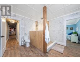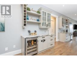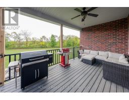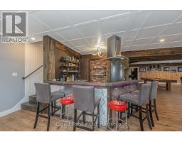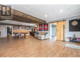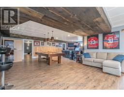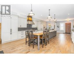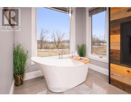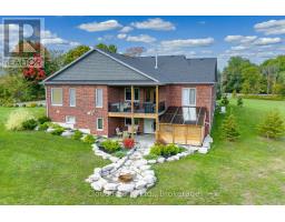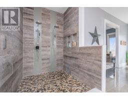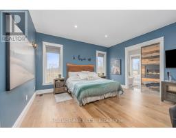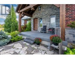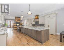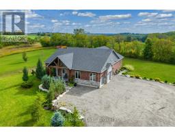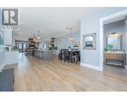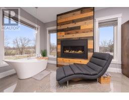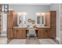 This extraordinary 5-bedroom, 5-bathroom custom-built bungalow offers over 5,000 sq ft of beautifully finished living space on 9 peaceful, tree-lined acres in sought-after Erin. A perfect blend of luxury and functionality, the home features hardwood flooring throughout the main level and a chefs dream kitchen with a large quartz island, top-of-the-line appliances, and a two-way fireplace connecting to the inviting living room. A walkout from the living room leads to a covered deck overlooking the stunning property ideal for entertaining or quiet evenings in nature. The primary suite is a true retreat, featuring a spa-inspired ensuite with a spacious 6x6 open-framed shower, freestanding tub warmed by a gas fireplace, and elegant finishes. Two additional main floor bedrooms each offer 4-piece ensuites and double closets, providing comfort and privacy for family or guests. The fully finished walk-out basement boasts a spacious layout with heated floors, a second kitchen, games area, cozy great room with gas fireplace, dedicated theatre room with Dolby Atmos 9.1 surround sound, one bedroom currently used as a home gym, and a second bedroom with a semi-ensuite featuring another 6x6 open-framed shower. Step outside to a private patio with gazebo, hot tub and built-in fire nook perfect for relaxation. Additional highlights include a heated garage with epoxy flooring, whole-home 22kW automatic generator, reverse osmosis water treatment system, and scenic pond separating two 4+ acre parcels each with its own driveway and natural gas hookup. Previously approved for a second building (with septic and well), this property offers luxury, flexibility, potential future development, and country charm in one unmatched package. (id:61594)