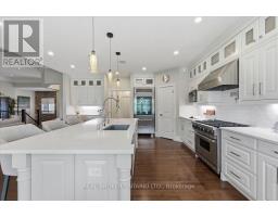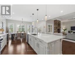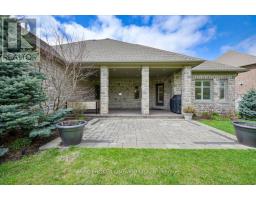 Set on a quiet cul de sac in Deer Ridge Estates, 945 Riverstone Drive sits on an expansive pie-shaped lot of a third of an acre, where lots of this size, privacy, and no rear neighbours are rarely found in Deer Ridge Estates. Built entirely in stone, this bungalow offers over 5,200 sq ft of fully finished living space and presents with quiet confidence from the street, surrounded by mature landscaping. Inside, the home opens with 10 foot ceilings and a layout that flows naturally from one space to the next. The kitchen is the focal point of the main living area. A full 9 foot quartz island anchors the space, paired with custom cabinetry, a Sub Zero fridge, and a Viking six burner gas range. It connects directly to the dining area and main living space, where a stone fireplace and large windows overlook the backyard. The main level offers three well proportioned bedrooms, including a primary suite set apart with dual walk-in closets and a spacious ensuite with heated floors, double vanity, and soaker tub. The lower level is fully finished and thoughtfully designed as a natural extension of the home, with a large recreation area, guest suite, full bathroom, and wet bar. A covered stone porch extends the living space outdoors, designed for both dining and lounging, and opens to a fully fenced backyard enclosed with iron rod fencing, making full use of the third of an acre lot, framed by mature evergreens and complemented by raised garden beds. Steps to the Walter Bean Grand River Trail, minutes from Deer Ridge Golf Club, and with easy access to highways, restaurants, entertainment, and shopping, this is a one-of-a-kind offering in one of Kitchener's most established neighbourhoods. (id:61594)