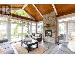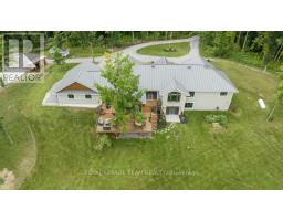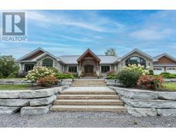 ICF Construction! This stunning 8-bedroom luxury residence is set on 12 acres of breathtakingly private countryside. A custom walkout bungalow with magazine-worthy curb appeal, it features extensive landscaping and a rarely offered insulated outbuilding nestled among towering trees.The heated, oversized garage includes a third door perfect for a mower or extra storage. An expansive deck with a striking tree feature offers splendid country views. Inside, impressive craftsmanship abounds, from the double-door foyer to the extensive trim work and wainscoting throughout. Oversized triple-pane windows and elegant lighting beautifully illuminate the home. Enjoy year-round comfort in the insulated sunroom with a two-sided fireplace for seamless indoor/outdoor enjoyment. The gourmet eat-in kitchen offers a stylish peek-a-boo opening to the living room, which is anchored by a grand stone fireplace. A main-floor den and an oversized laundry room complete with double laundry machines, granite countertops, and extensive built-in cabinetry add to the home's exceptional functionality.The walk-out lower level features incredible in-law potential and boasts in-floor heating, additional bedrooms, a full bath, an enormous rec room, and abundant storage. Outdoors, a concrete pad is ideal for sports, and a charming goat barn completes the picture. All this, just minutes from the highway and Carleton Place! (id:61594)