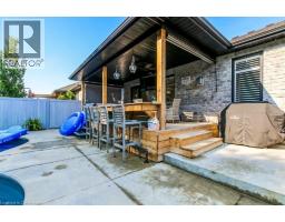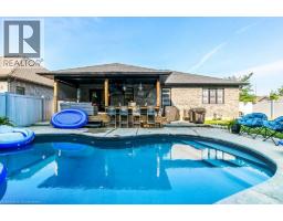 Welcome to Bluegrass Estates! This stunning 1,400 sq ft bungalow sits proudly on a beautifully landscaped corner lot and offers the perfect blend of comfort, elegance, and outdoor luxury. Step up to the grand entry with a stone walkway and into a spacious, welcoming foyer. Inside, you’ll find a bright, open-concept layout enhanced by engineered hardwood flooring, modern lighting, and California shutters throughout. The custom kitchen flows seamlessly into the dining and living area featuring a striking stone fireplace with a natural gas insert—ideal for cozy evenings. This thoughtfully designed home features 3 generous bedrooms and 3 bathrooms, including a private primary suite with a well-appointed ensuite. Convenient main floor laundry adds to the ease of everyday living. Step outside into your own private backyard retreat—an entertainer’s dream! Enjoy the 14' x 28' kidney-shaped saltwater pool, concrete patio, and a custom-built bar overlooking the water. Relax under the large covered back deck, complete with ceiling fan and privacy screens, or unwind in the manicured yard enclosed by vinyl fencing. Additional outdoor features include a storage shed and an in-ground lawn sprinkler system to keep everything looking its best. A spacious double garage and great curb appeal complete the package. Located in the sought-after Bluegrass Estates community, this property truly offers it all. Don't miss this rare opportunity—book your private showing today! (id:61594)