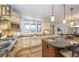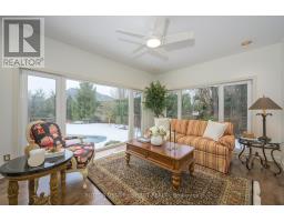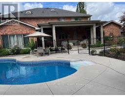 Classic architecture, timeless design, & a rare sense of permanence define this exceptional all-brick residence on prestigious Highland Woods Court. Designed for sanctuary-level privacy w/outstanding proximity to Victoria Hospital, Highland Golf & Country Club, Wortley Village, & downtown London's business centre. A recessed, solid wood double-door entry opens to 2 storey foyer w/ curving staircase &, expansive principal rooms showcasing hardwood floors, crown moulding & rich millwork. Approx 3600 sq. ft a/g (MPAC) + 1200 finished in lower level. The heart of the home is the oversized kitchen featuring extensive custom cabinetry, granite counters, upscale appliances, & a large centre island designed for gathering. Patio doors extend to the covered back terrace-creating seamless indoor-outdoor flow for poolside entertaining. Double French doors lead from the kitchen into an inviting family room anchored by an open-hearth, full-flame gas fireplace. From here, step into the glass-surround sunroom w/ full-height tilt/turn windows & doors overlooking the landscaped gardens, heated pool & cabana w/ 2-piece washroom. Upstairs offers four spacious bedrooms, including an oversized primary suite w/ gas fireplace, an updated 6-piece ensuite w/freestanding soaker tub, seated glass-enclosed shower, skylight, separate water closet, double sink vanity, & custom California closet. The finished lower level adds significant lifestyle space w/ a games room featuring built-ins, media room w/ wet bar, & a dedicated gym & powder room. Outside, the fully fenced yard includes a separately-fenced heated pool, cabana w/ 2-piece bath, irrigation system, flagstone paths, mature trees, layered landscaping, & an oversized covered patio w/ soaring ceiling, lighting, & fans. Bonus 3-car tandem garage w/stairs to lower level completes the offering. Main floor laundry, A property that balances scale, craftsmanship, & location-designed for those who value privacy, family, & enduring quality. (id:61594)